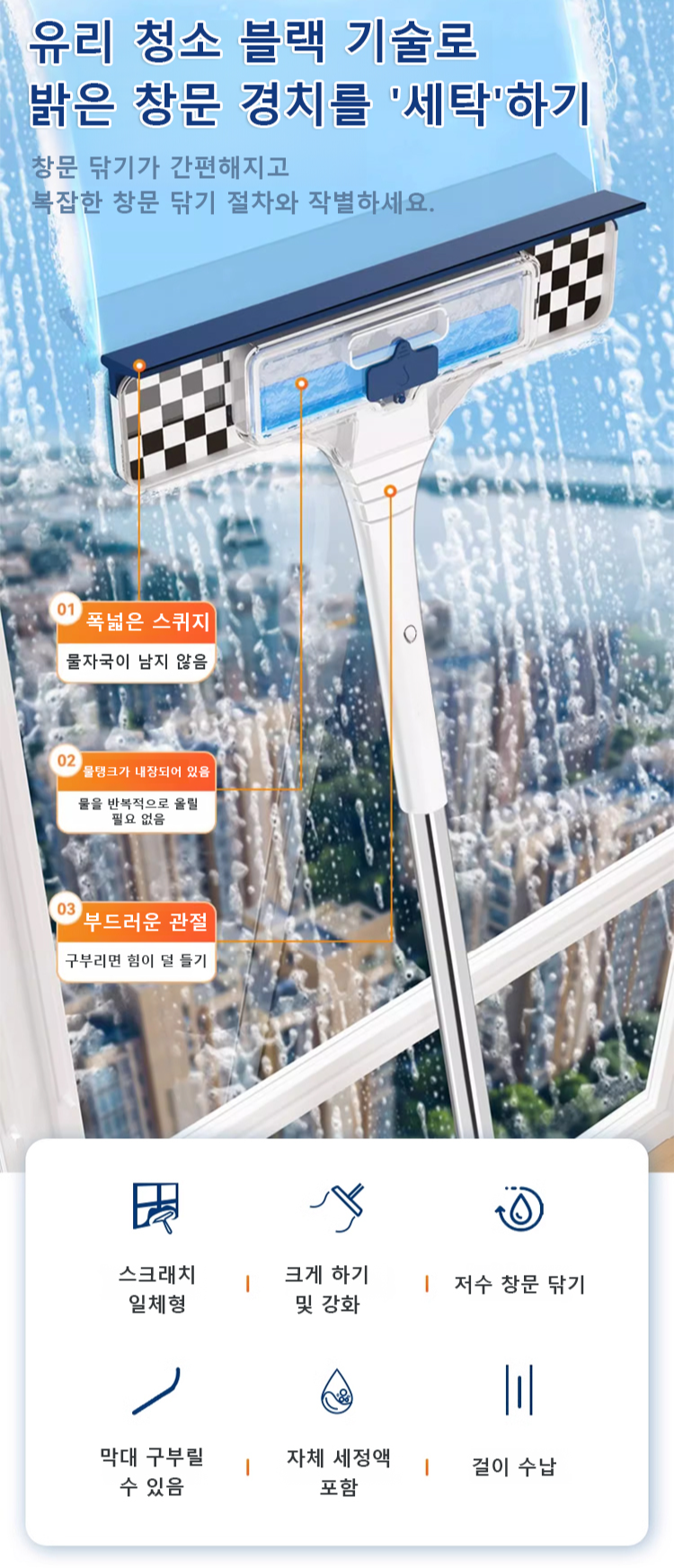 【청소액 내장】3-in-1 자동 물 분사 창문 청소기